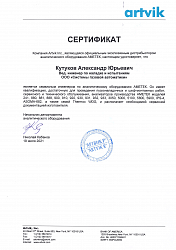 Сертификат обучения в компании Artvik Inc.